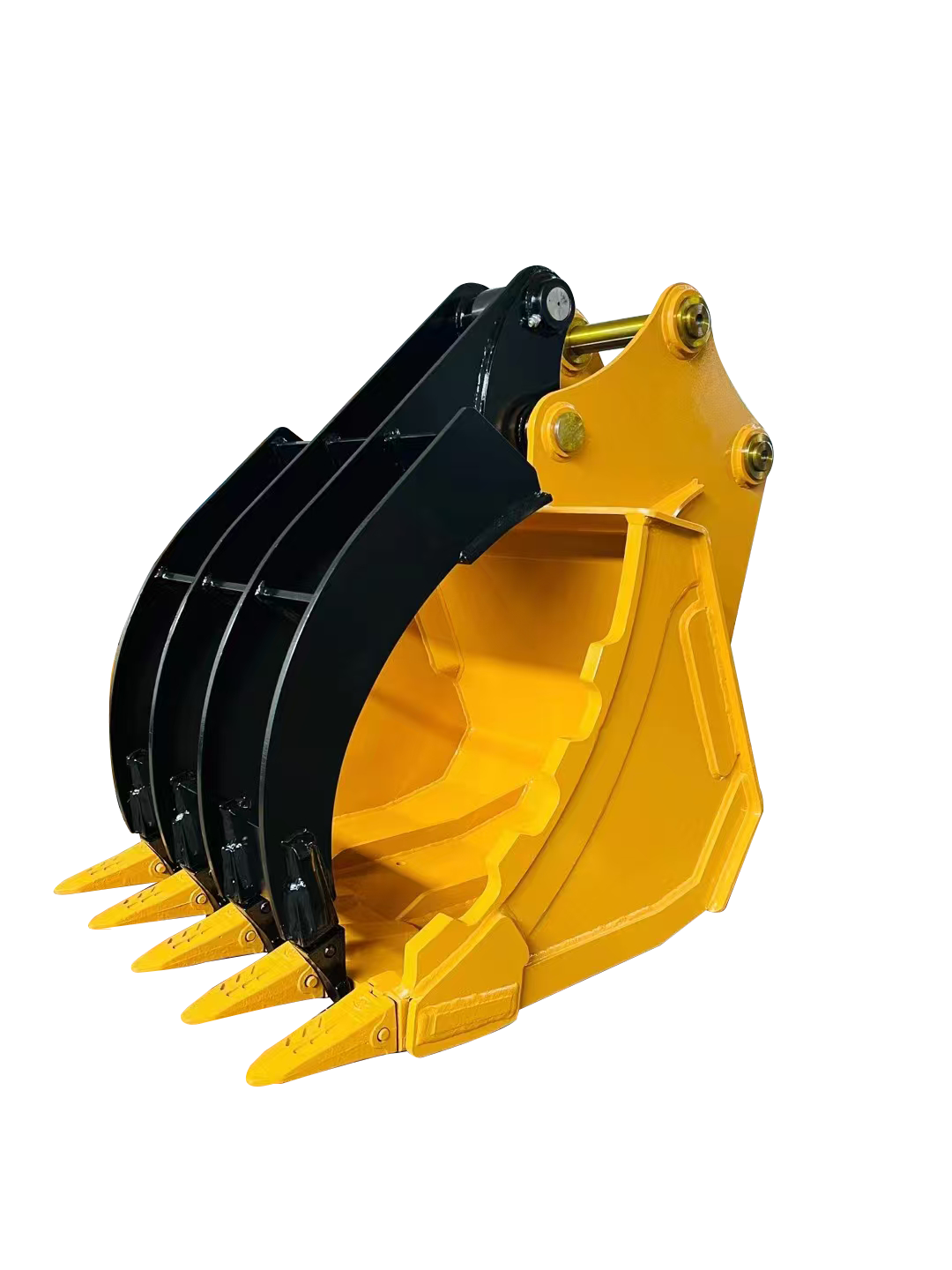 Excavator Thumb Grab Bucket is a mechanical component connected to the end of the excavator arm. It is used to grip and manipulate hard materials. Operators control the thumb grab bucket through hydraulic control devices, which are activated by hydraulic cylinders to move the clamping jaws and assist in transporting bulk materials. It is manufactured according to precise technical specifications, featuring high durability, reliable performance, and excellent productivity. Moreover, it can withstand harsh environments. The excavator thumb grab bucket is mainly used to grab and manipulate large objects through hydraulic control.