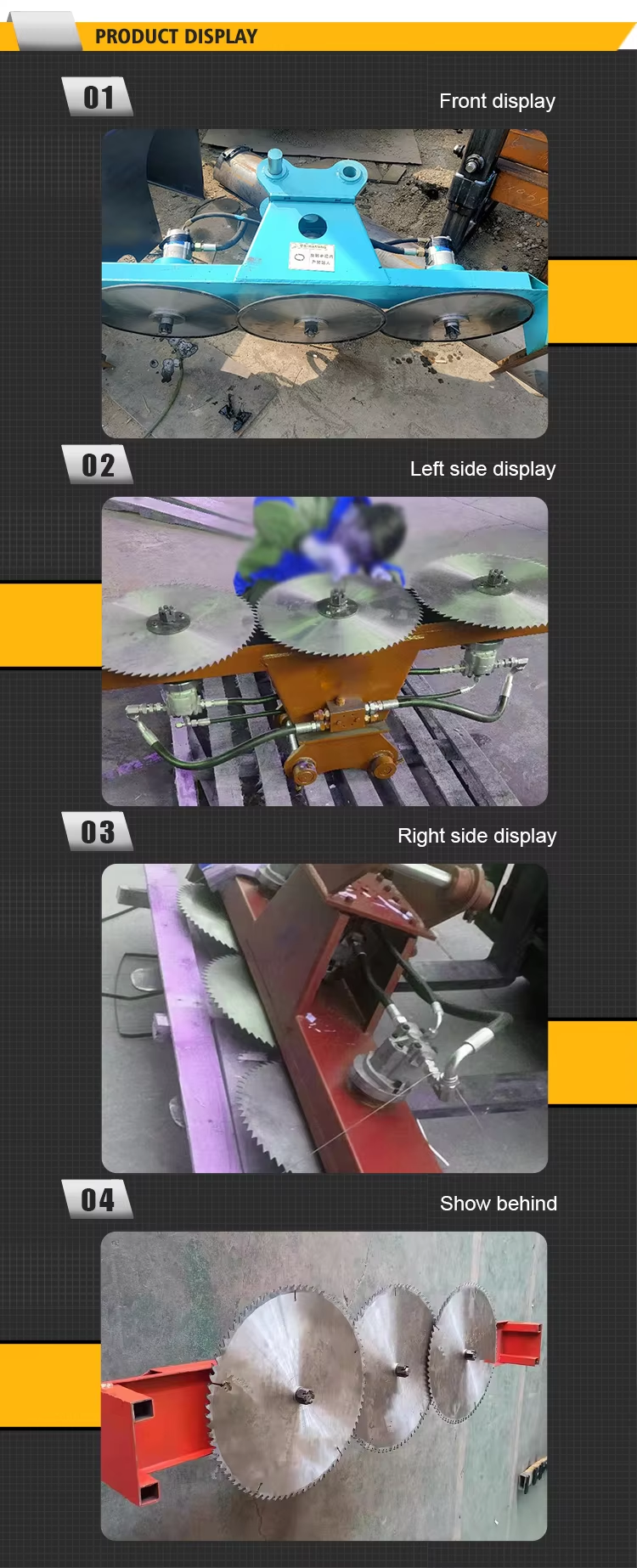 Excavator Three - Blade Saw is a kind of attachment for excavators. It is mainly composed of three saw blades and a hydraulic drive system. The three saw blades are arranged in parallel, which can increase the cutting efficiency. This saw is suitable for cutting various materials such as branches, small - diameter logs, and some soft metals. When in use, it is connected to the excavator through a hydraulic pipeline, and the power of the excavator's hydraulic system is used to drive the saw blades to rotate at a high speed, thereby achieving the cutting function. It has the advantages of high efficiency, good mobility, and strong adaptability, and is widely used in forestry, gardening, and some small - scale construction sites.