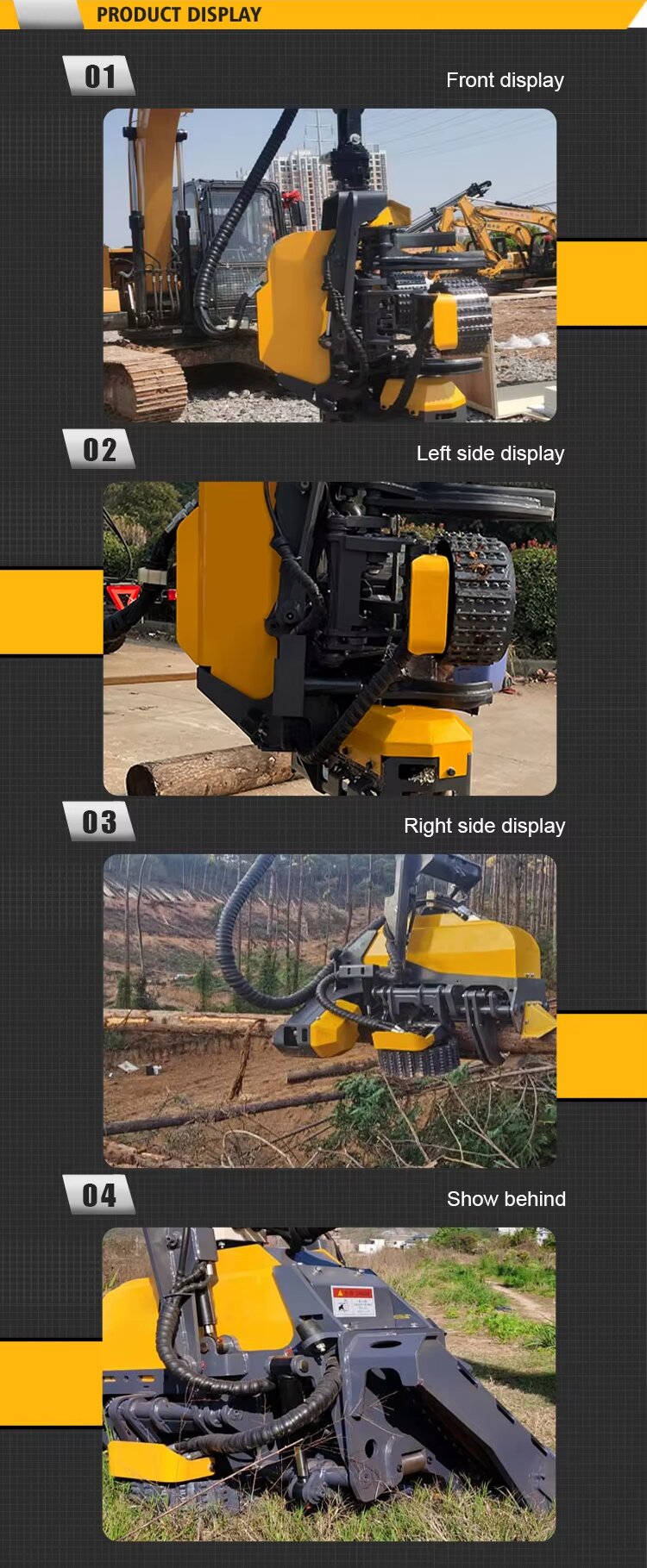 An excavator - mounted tree felling attachment is a specialized device designed to be attached to an excavator. It enables the excavator to perform tree felling operations efficiently and safely. This attachment usually consists of a powerful cutting mechanism, such as a hydraulic saw or a shearing blade, which is capable of cutting through tree trunks of various diameters. The cutting mechanism is controlled by the hydraulic system of the excavator, allowing for precise and controlled movements. Additionally, some attachments may be equipped with features like tree - gripping arms to hold the tree firmly during the cutting process, ensuring stability and preventing the tree from falling in an uncontrolled manner. This attachment is widely used in forestry operations, land clearing projects, and other applications where trees need to be removed. It combines the power and versatility of an excavator with the specific function of felling trees, offering a more efficient and productive alternative to traditional tree felling methods.