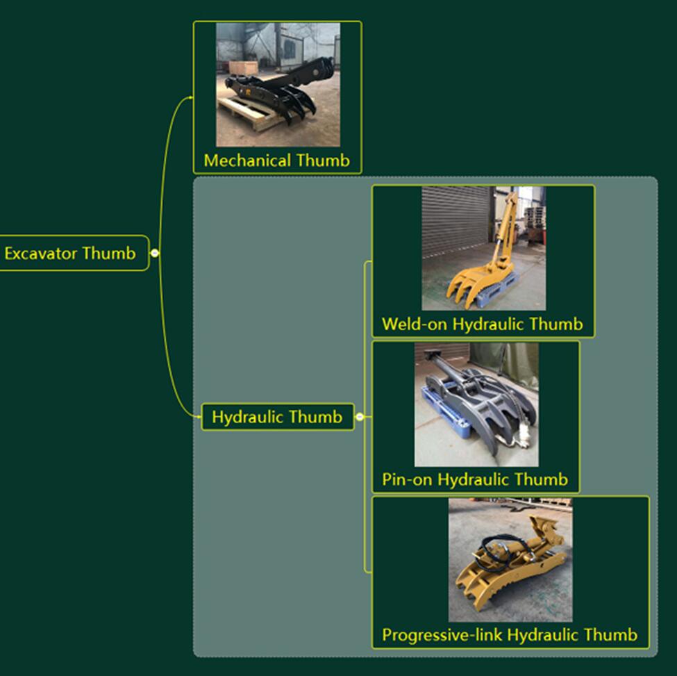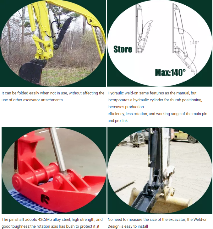 excavators from 1 ton to 50-ton machines.Hydraulic thumb control angle are more flexiable than mechnical thumb.