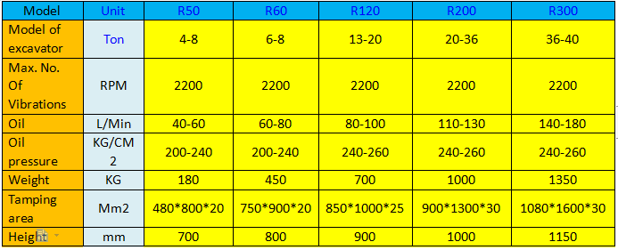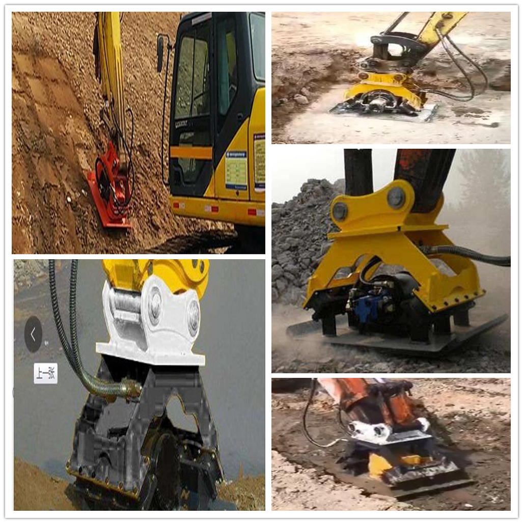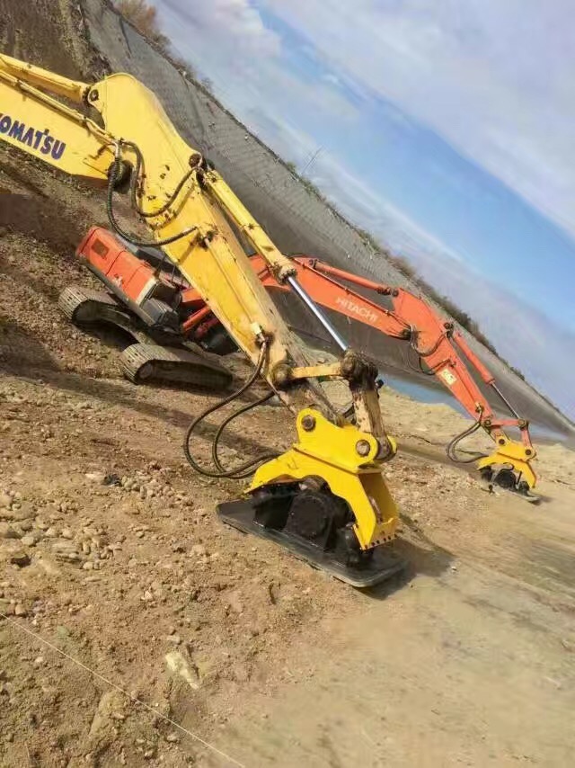 Excavator vibration rammer, installed in the front end of the excavator can be used to tamp slopes, roads, grooves, steps and so on, which can not be completed by other tamping machinery. It has large tamping strength, convenient installation and strong force. There are four specifications, can be adapted according to the excavator model.
